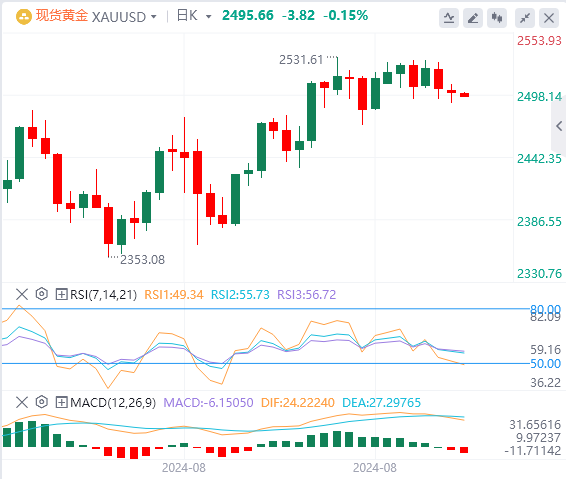 周二亚盘,黄金交投于2495.66附近 。昨日由于美国市场在劳动节期间关闭,黄金价格在北美时段下跌。相反 ,美元仍然坚挺,因为交易员正在为可能影响美联储9月降息规模的决定的就业报告做准备。本周,美国经济形势将繁忙 ,将发布供应管理协会(ISM)制造业和服务业采购经理人指数、JOLTS职位空缺 、ADP全国就业变化和非农就业人数(NFP)数据 。   技术面:黄金价格向上倾斜,尽管势头已发生负面变化 ,如相对强弱指数(RSI)所示。尽管RSI看涨,但其斜率向下,接近中性水平。因此 ,短期内 ,黄金偏向下行 。如果黄金跌破2500美元,下一个支撑位将是8月22日的低点2470美元。一旦突破,下一站将是8月15日摆动低点和50天简单移动平均线(SMA)在2424-2431美元区域附近的汇合处。相反 ,如果黄金保持在2500美元以上,下一个阻力位将是ATH,下一个阻力位将是2550美元大关 。违反后者将面临2600美元的损失。